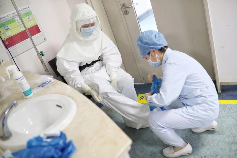 葛艳玲和主治医师王相诗,家里都有个不足六个月的婴儿,她们选择将孩子留给家中老人照顾,自己义无反顾守在医院。在急诊翻班的蔡洁皓,被主任召回来驻守感染科病房,丝毫没有怨言。常海岭、田鹤两位医生年轻又朝气蓬勃,此前没有遇到如此大的疫情,这次经受挑战不怯场,他们穿着防护服在发热门诊排除疑似病例,常常一天顾不得吃一顿热饭,几小时下来,口罩摘下脸庞已压出痕迹。