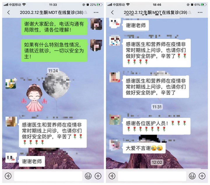 神经内科的郁莉斐及倪燕医生仔细询问家长近期患儿的生酮比例,完成耐受情况,癫痫发作或其他病情的变化情况,询问患儿的生长发育、认知及运动的变化、帮助查找并分析脑电图报告,为患儿提供下一步饮食及药物治疗的决策;因为疫情的关系,患儿的活动量减少,食纳也出现了相应的减小,疫情严重地区的家庭无法正常购买接收生酮专用配方产品,临床营养科龚晓妍和卢忠英两位营养师耐心地和家长交流患儿的营养情况、饮食完成情况、在特殊时期给予患儿制定了个体化的生酮饮食治疗计划和建议,确保患儿能健康的度过这个时期。小小的诊室里,团队成员们耐心的讲解和建议,换来了家长们一声声的感谢,温暖着电话两端的医生和患者。