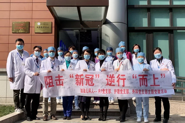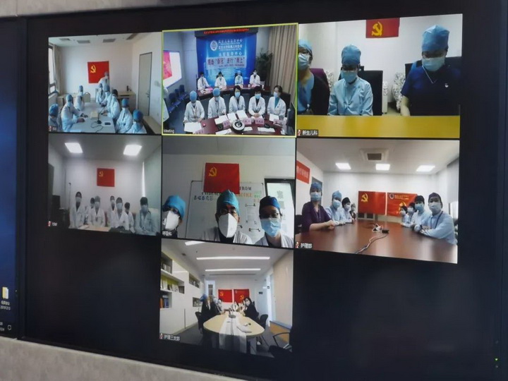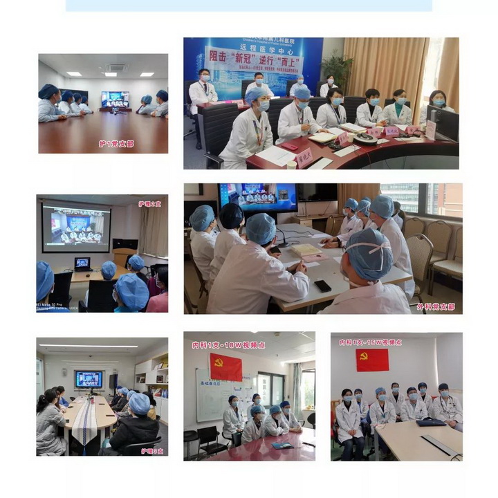 之后,内科第1党支部黄瑛书记携手护理第1、2党支部的顾莺书记、陈劼书记以及外科党支部王达辉书记,通过视频会议的形式向全体支部党员发出如下倡议: