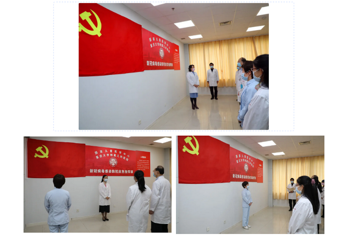 两位同志和在场的全体医院党政领导、前线临时党支部书记葛艳玲同志共同宣誓,由党委书记徐虹同志领誓。因情况特殊,来自前线临时党支部的5名党员在传染病隔离病房内,采取视频连线方式见证了此次庄严、神圣的时刻。徐虹书记指出,在这场突如其来的疫情面前,在血与火的考验中,曾玫和夏爱梅同志充分展示了高度的责任感和使命感,带领团队冲锋在前,出色的完成了党和人民交给我们的光荣任务,在党的教育和指引下,她们不断进步,不断成长,今天我们为有这样优秀的同志加入中国共产党而感到骄傲和自豪,同时希望我们儿科医院全体党员和全院职工向她们学习,在当前抗疫斗争的复杂严峻的环境下,始终保持高昂的精神状态,不辱使命,坚决打赢这场战斗!