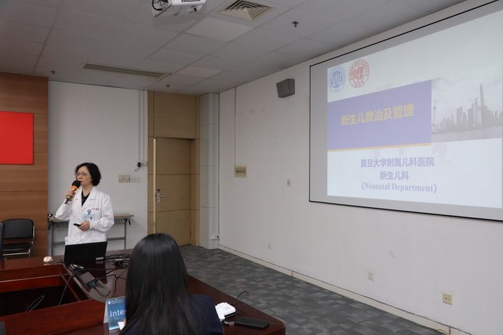 新生儿科曹云主任从我院新生儿科的人员结构、医疗服务、教学培训、国内辐射及国际合作交流等进行分享。