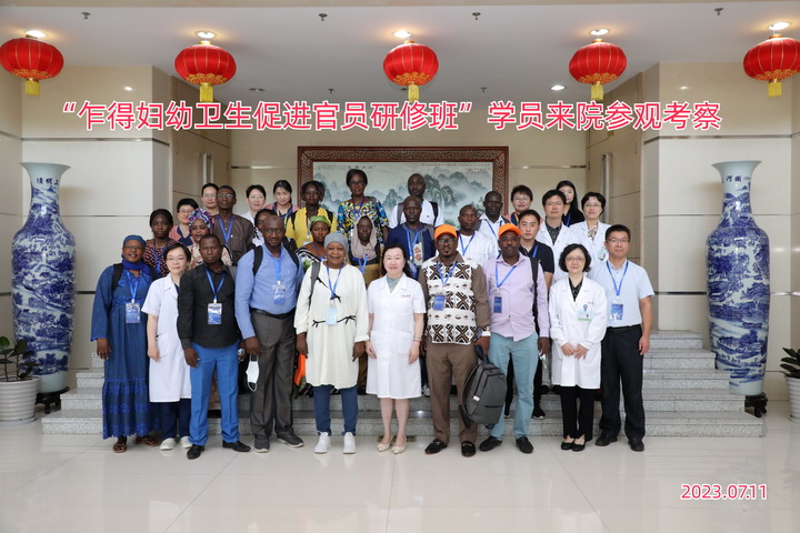2023年7月11日,由国家卫生健康委、商务部委托,国家卫生健康委生殖健康家庭保健中心承办的“乍得妇幼卫生促进官员研修班”学员一行来院参观考察。