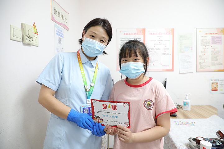 2018年,她在沉浸式医学体验馆--“梦想医学院”担任志愿者感受到了医疗游戏的魔力,并于2019年参加了专项培训班,2020年毕业后通过路演、打针我不怕等多种方式不断推进医疗辅导在门诊护理中的应用,门诊满意度从2019年的4.62攀升到2022年的4.91分。2020年疫情期间,她还通过小布家园为滞留在门诊的家属26人次,提供了住宿及生活帮助。