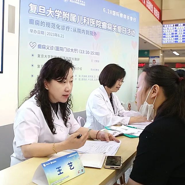 线下义诊活动在复旦大学附属儿科医院门诊大厅进行,王艺院长对癫痫关爱日相关活动进行致辞,周水珍主任介绍神经科及癫痫中心,神经内外科、营养及护理团队联合参加了本次义诊,对前来问诊的癫痫家庭进行了规范化诊疗指导,受到在场群众的一致好评。