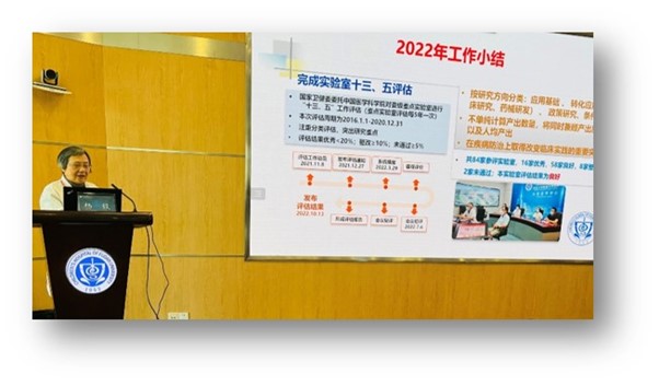 实验室副主任杨毅教授首先总结汇报了实验室2022年度的整体运行情况,在实验室全体人员的努力下,克服了疫情带来的种种困难,实验室整体运行良好。顺利完成了国家卫健委委托中国医学科学院对委属重点实验室进行的“十三五”工作评估,取得了“良好”的评估成绩。2022年度实验室新获资助的各类科研项目21项,总经费4718万,较往年都有显著增长;发表论文的数量和质量均有大幅提升,以第一或通讯作者发表有实验室署名的论文56篇,其中SCI影响因子>10的论文7篇,影响因子5~10的论文16篇;参与制定和编写专家共识8篇:主编出版新生儿医学专著4部。此外,在人才培养、教学工作、学术交流等方面也都交出了满意的答卷。杨毅副主任还介绍了实验室2023年的初步工作计划。