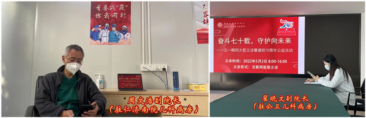 2022年5月2日,复旦大学附属儿科医院在互联网医院开展了大型线上义诊暨建院70周年公益活动,解决疫情期间儿童就医难题。本次互联网义诊由院领导带头,各临床科室主任均线上参与,全力为患儿及家长服务。