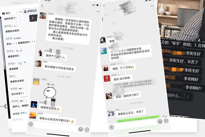 为了保证家长们有更多的参与度及提问讨论机会,我们后续进行了分会场的讨论。分为徐秀医生和鲁萍治疗师组、徐琼医生和朱叶治疗师组、李慧萍医生组三组对家长的疑问进行了解答。各位家长们的提问和讨论也都十分积极,活动共持续了3.5小时,共回答了百余个家长的提问,给家长和相关专业人员带来了一场干货满满的视听盛宴,为正在进行孤独症家庭干预的家长们展示了和孤独症儿童互动的基本技巧,同时也让专业人员对干预实践的理念得到了提升。活动结束时,家长纷纷对嘉宾表达了感谢!