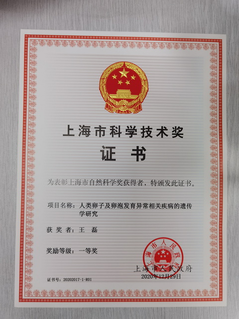 2021年12月1日,上海市科学技术奖励大会在上海展览中心隆重举行,我院王磊教授领衔的“人类卵子及卵泡发育异常相关疾病的遗传学研究”项目获得上海市自然科学奖一等奖,王磊教授为第一完成人,桑庆副研究员为第二完成人。