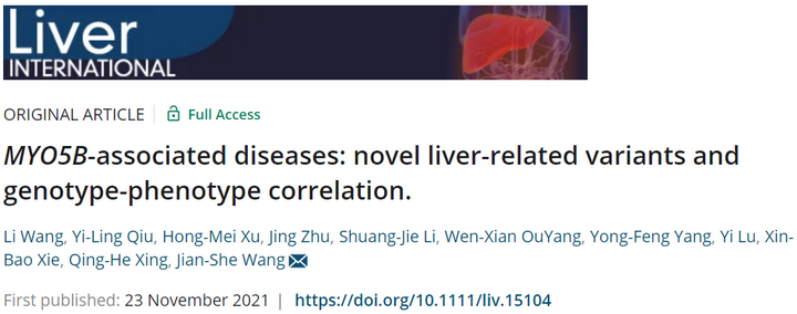近期我院感染传染科肝病研究团队王建设教授课题组于世界著名老牌肝脏病杂志《Liver International》发表题为《MYO5B-associated diseases: novel liver-related variants and genotype-phenotype correlation》的研究论著。该研究由复旦大学附属儿科医院携手重庆医科大学附属儿童医院、湖南省儿童医院、南京市第二医院等多家肝病中心及复旦大学生物医学研究院合作完成。
