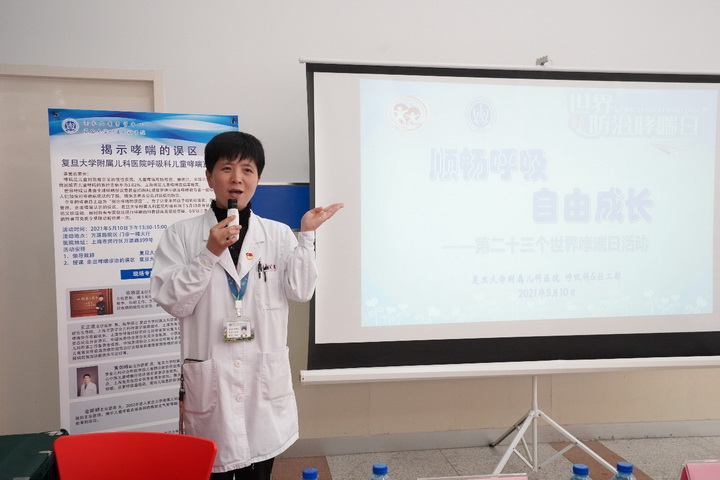 哮喘是儿童期常见的慢性呼吸道疾病,近年来儿童哮喘的发病率在逐年递增,然而,儿童哮喘的控制情况却不甚理想。为了帮助病患家长正确认识哮喘本质,走出哮喘诊治的误区,在第23个世界哮喘日来临之际,复旦大学儿科医院呼吸科联合社会工作部及门急诊管理办公室于5月10日举办了“顺畅呼吸,自由成长”的科普义诊宣传活动。