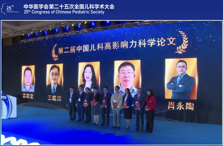 2020年10月22日,中华医学会召开了第二十五次全国儿科学术大会。我院王晓川、周玉峰教授的论文荣获“第二届中国儿科高影响力科学论文奖”。