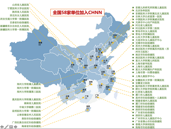 中国新生儿协作网(Chinese Neonatal Network,CHNN)是致力于新生儿医学相关研究的协作性研究网络,旨在建立和运行中国新生儿重症监护病房目标人群标准化数据库,2018年5月与国家儿童医学中心新生儿专科联盟携手,为中国和国际研究者开展新生儿/围产医学领域高质量、合作性临床研究提供平台和机会。协作网由复旦大学附属儿科医院陈超教授、加拿大多伦多大学Shoo K.Lee教授担任主席,复旦大学附属儿科医院周文浩教授、浙江大学附属儿童医院杜立中教授担任共同主席;复旦大学附属儿科医院曹云教授担任秘书长,首都医科大学附属北京儿童医院新生儿科黑明燕教授和上海交通大学医学院附属上海儿童医学中心新生儿科孙建华教授担任副秘书长;下设专家委员会和执行委员会,依托复旦大学附属儿科医院的中国新生儿协作网研究中心及协调中心实施运营;2018-2019年已吸引全国25个省、直辖市的58家三级医院新生儿重症监护室加入。经过前期充分准备,中国新生儿协作网临床数据库于2019年1月1日起正式运行,同时已开展“中国新生儿重症监护室质量改进”等多项高水平多中心临床研究项目。