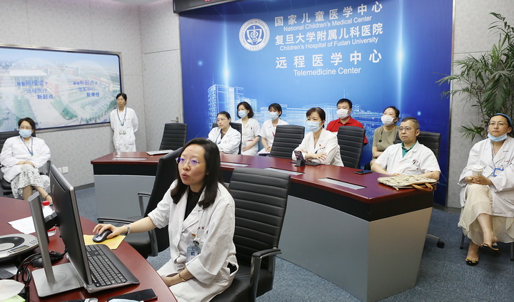 然而,这一疾病临床表现多样、早期症状缺乏特异性,临床认识不足、就诊科室分散,延迟诊断可长达15-20年。为了让可能罹患法布雷病的患儿早期得到诊治,由中国法布雷病专家协作组成员、复旦大学附属儿科医院徐虹教授牵头,整合医院肾脏科、神经科、心内科、风湿科、消化科、皮肤科、眼科、五官科、内分泌遗传代谢科、新生儿科、心理科、病理科、分子诊断中心和社会发展部等十余个科室,于2020年4月成立了国内首个儿童法布雷病MDT团队,建立了高危患儿的筛查平台、评估流程和确诊患儿的综合管理策略。MDT团队成立至今短短4个月,已对表现为肢端疼痛,或少汗、皮肤角质瘤、心肌肥厚、脑梗死等近20例患儿进行了筛查,其中1例新生儿便血患儿已得到基因确诊(该患儿系国内首个新生儿筛查确诊患者),另有3例酶学和/或底物筛查异常的患儿,正在等待基因检测结果。我们还与全球单中心最大组法布雷病诊治中心——瑞金医院陈楠教授团队合作,近期对在瑞金医院确诊的成人患者的多名子女进行了综合评估,制定了个体化治疗方案。此外,某外院诊断患儿通过媒体了解到我院该儿童专病MDT成立的新闻后,慕名前来,通过多学科的评估和讨论后,制定了个体化的综合治疗方案,包括特异性酶替代治疗(注射用阿加糖酶β)和症状导向治疗(包括针对蛋白尿的血管紧张素转化酶抑制剂,针对神经性疼痛的镇痛药物,以及心理治疗等)。借助社会发展部的慈善募款,8月20日,患儿顺利接受了酶替代治疗,成为在上海首例接受法布雷病特效药的儿童。当天,国家卫健委“健康中国2020战略规划”公共政策研究组专家、中华预防医学会卫生管理分会常委及青年委员会主任委员、上海市曙光学者、复旦大学公共卫生学院卫生事业管理学教研室主任、卫生政策专家吕军教授当天也通过视频连线,关注上海首例儿童法布雷病特效药应用的相关情况。