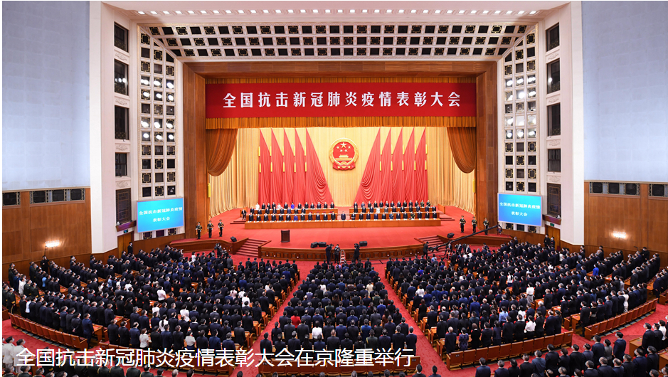 中共中央总书记、国家主席、中央军委主席习近平向国家勋章和国家荣誉称号获得者颁授勋章奖章并发表重要讲话。他指出,在过去8个多月时间里,我们党团结带领全国各族人民,进行了一场惊心动魄的抗疫大战,经受了一场艰苦卓绝的历史大考,付出巨大努力,取得抗击新冠肺炎疫情斗争重大战略成果,创造了人类同疾病斗争史上又一个英勇壮举!在这场同严重疫情的殊死较量中,中国人民和中华民族以敢于斗争、敢于胜利的大无畏气概,铸就了生命至上、举国同心、舍生忘死、尊重科学、命运与共的伟大抗疫精神。