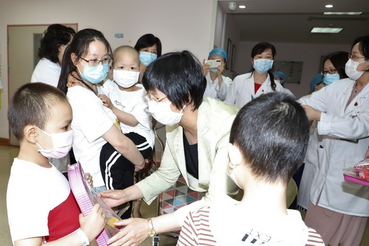 2020年 “六一”国际儿童节到来之际,上海市副市长宗明,市政府副秘书长顾洪辉,市妇儿工委副主任、市妇联主席徐枫,市卫生健康委员会巡视员吴乾渝等领导莅临复旦大学附属儿科医院,亲切慰问血液科病房的住院患儿,并向小朋友们赠送了儿童节礼物,祝愿孩子们节日快乐,早日康复!宗市长还慰问了我院医务人员,对我院新冠肺炎防控及复工复产等工作给予充分肯定,勉励儿科医院在疫情防控常态化形势下继续做好各项工作。复旦大学附属儿科医院徐虹书记、黄国英院长、翟晓文副院长等领导陪同慰问。