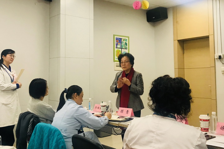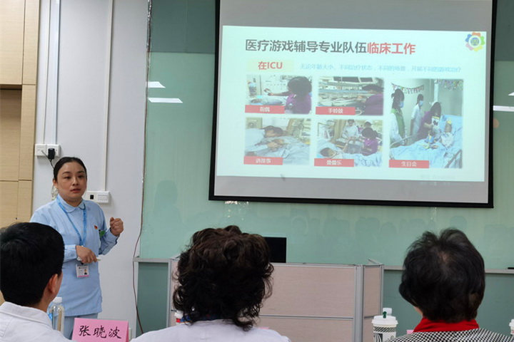 目前,本院共有游戏辅导员21名,会议上来自重症急救科的张顺娣、中心供应室的庄燕华、心血管中心的夏倩、呼吸消化科的乐倩、新生儿科的钱葛平及神经外科的王佳怡作为医疗游戏治疗师的代表分别介绍了本年度各自在开展游戏治疗的经验和成果,以及对下一年的工作展望,精彩的案例分享和积极的工作作风赢得了台下阵阵掌声。