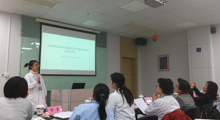接下来,来自社会发展部的董颖老师介绍了医疗游戏辅导员ChildLife国际认证的过程及意义。CCLS(Certificated Child Life Specialist)的全称是持证儿童生活辅导专家,他们在医院中帮助患儿及家庭应对住院、疾病和残疾的挑战,它起源于20世纪60年代初,目前的工作主要是实施以儿童为中心的干预措施和疼痛管理技术,与患儿及家庭成员合作,帮助他们应对住院和医疗程序ChildLife国际认证则需要申请者在已获得本科或研究生学位的基础上,再通过儿童生活或相关科学领域的10门课程,完成600小时专业实习,最后通过CCLS认证考试。