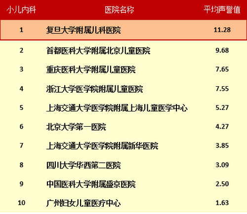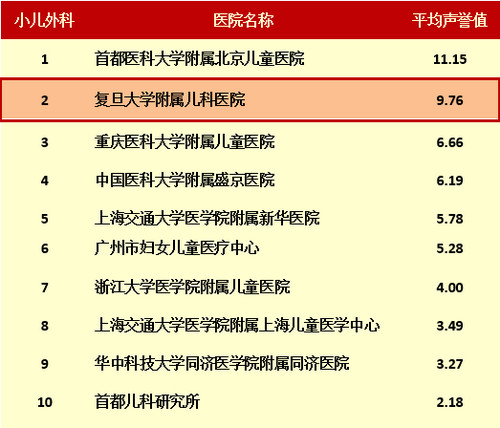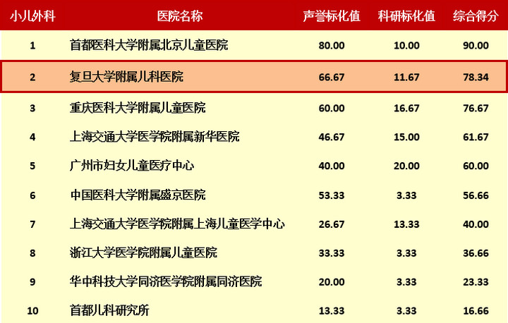 近几年,复旦儿科在全国各类医院排行榜,如北京大学中国最佳临床学科排行榜、中国医学科学院中国医院科技影响力排行榜、英国Nature出版集团Nature Index中国医院排行榜中始终位居前列。