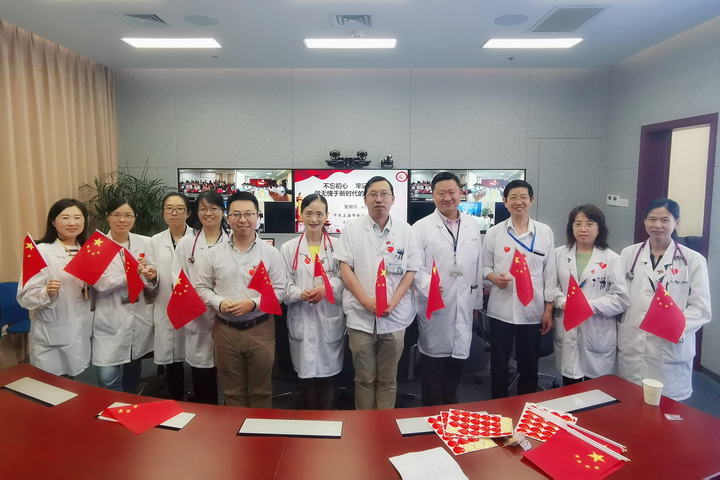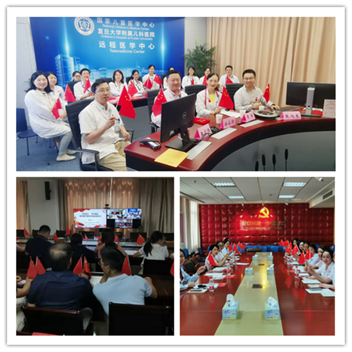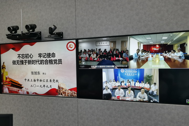 礼赞新中国,奋进新时代。2019年9月24日,在举国上下欢庆新中国成立70周年之际,中共复旦大学附属儿科医院内科第1支部开展“不忘初心、牢记使命,献礼祖国七十华诞”主题党日活动。此次活动邀请了复旦大学附属儿科医院厦门分院(厦门市儿童医院)第五党支部和浙江新安国际医院妇儿党支部,三地结对并通过远程中心连线一起上党课,谈理想,话共建。党课后,支部发挥专业优势,利用党员医生的特长,开展“线上、线下义诊”,为患儿排忧解难。