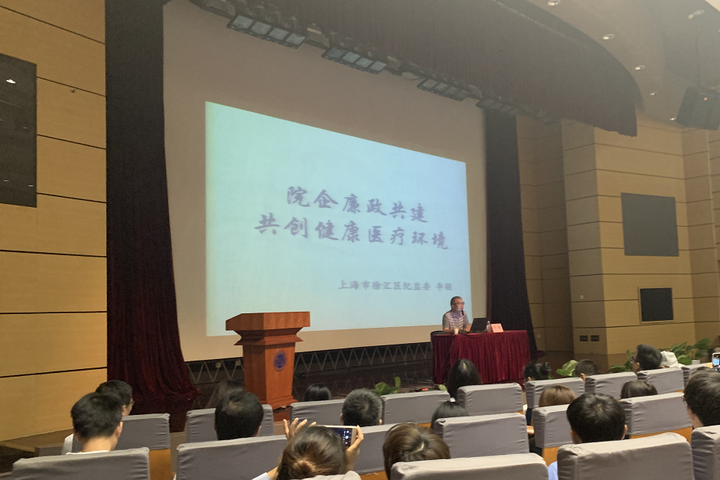 徐汇区纪委监察委调研员李骏同志在题为《院企廉政共建,共创健康医疗环境》的专题报告中,围绕监察体制改革,对监察法的监察对象、范围、方法、权限及程序作详细解读,监察法的实施表明了党和国家运用纪法衔接织就反腐密网,让腐败分子无处可逃的高压态势的决心和意义。同时,李骏同志结合丰富的办案经验,解析了近年来查办的医疗卫生系统有关商业贿赂犯罪的典型案件,提醒供应厂商勿踩底线,要通过合法途径提升商业竞争力,规避行贿犯罪风险。他在最后的总结中指出了新时代预防违纪违法的新要求,强调预防是根本,呼吁院企共同构建廉洁、高效的医药购销环境,维护好医院、企业、患者的共同权益,营造风清气正的合作氛围。