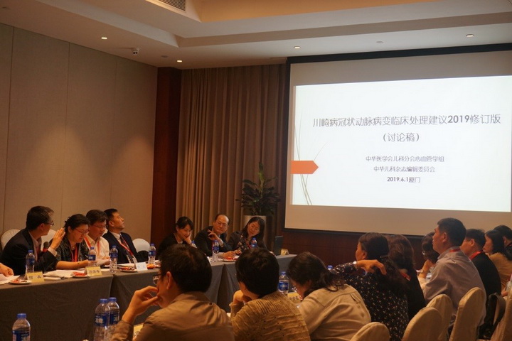 大会期间还召开了中华医学会儿科学分会心血管学组川崎病协作组2019年度工作会议,本次工作会议的主要内容是讨论我国《川崎病冠状动脉病变临床处理建议》的修订意见。协作组组长黄国英院长主持会议,刘芳主任预先进行了大量充分的准备工作,在她拟定的修订稿的基础上,协作组各成员纷纷踊跃发言,提出自己的意见和建议,日后将汇总这些建议,并进一步讨论将修订稿不断修改完善,期待这样一份我们中国的川崎病冠脉病变诊治规范修订版尽早出炉,让全国各地从事川崎病诊治的临床医师有规范可循,提高我国川崎病冠脉病变的诊治水平。