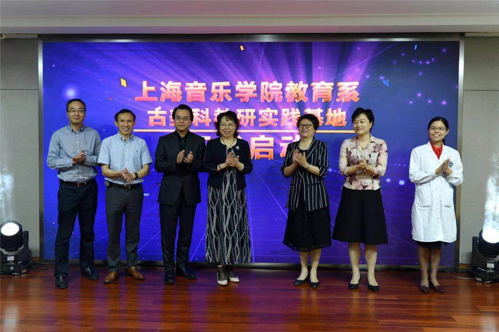之后上海市闵行区古美社区卫生服务中心主任汤春红、上海市闵行区卫生健康委员会副主任程建萍、复旦大学附属儿科医院党委书记徐虹、上海音乐学院教育系主任唐哲为此活动致辞并进行了上海音乐学院教育系古美科教研实践基地启动揭牌仪式, 绚丽夺目的灯光把活动一下子就推到了高潮,台下的观众齐声喝彩共同见证这实践基地的成功启动。随后,上海市闵行区残疾人联合会、民进上海市委妇女儿童委员会也联合向中心和复旦大学附属儿科医院捐赠慰问金,为特殊儿童奉献她们的一份爱。
