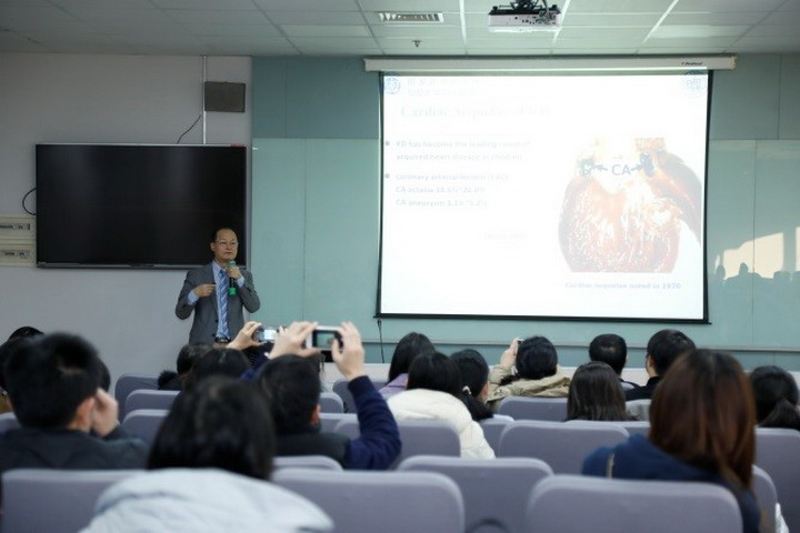黄国英教授致开幕辞并做了“川崎病流行病学和多中心临床研究"的报告,总结了国际和中国川崎病流行病学和临床研究的现状,对即将开展的川崎病多中心临床研究提供了重要参考。之后,上海市儿童医院副院长黄敏教授、浙江省儿童医院副院长龚方戚教授、北京儿童医院杜忠东教授、苏州儿童医院吕海涛教授、温州医科大学褚茂平教授以及儿科医院心血管中心的刘芳主任、吴琳主任、马晓静主任、田宏主任、叶明主任和风湿科孙利主任、核医学科赵瑞芳主任先后做了专题讲座和授课,涵盖川崎病的大数据分析、遗传学和分子机制研究、临床诊断和鉴别诊断、急性期治疗进展、冠脉病变及心肌缺血的超声、心电图、影像学及核医学评估、冠脉病变的长期管理和干预治疗等方面,从基础到临床,理论与实践相结合,内容精彩纷呈,吸引了所有与会者,整个会场座无虚席。