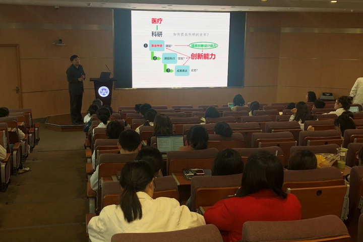 国家自然科学基金项目申报推进会中,神经生物国家重点实验室主任郑平教授做了专题讲座。郑平教授介绍了标书撰写的思路:如何发现问题、到分析问题、最后解决问题,指出撰写国自然申请书的过程事实上是青年科研人员一次很好地创新性科研思维和能力的训练过程,推动了年轻医生申报项目的热情和信心。
