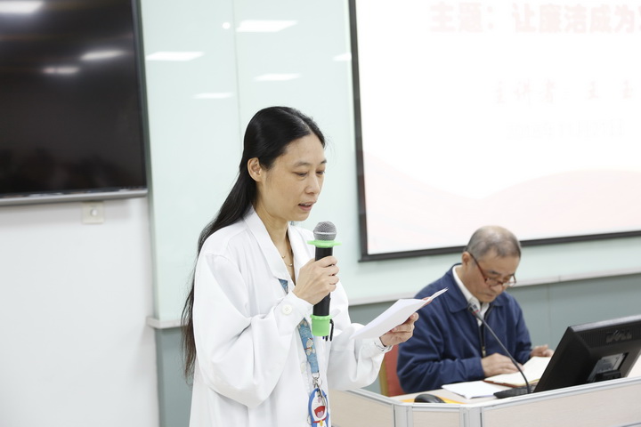 王玉同志长期工作在纪检监察工作战线,在医疗领域党风廉政、行风建设、宣传教育方面有丰富的实践经验。他在长达一个半小时的以题为《让廉洁成为习惯》的主题报告中,结合大量鲜活的案例从个人的价值观、信仰问题及党员干部在工作生活中所经历的考验,提出了规则意识和制度意识的重要性,约束与监督的必要性,为医院同仁上了一堂生动的警示教育课。