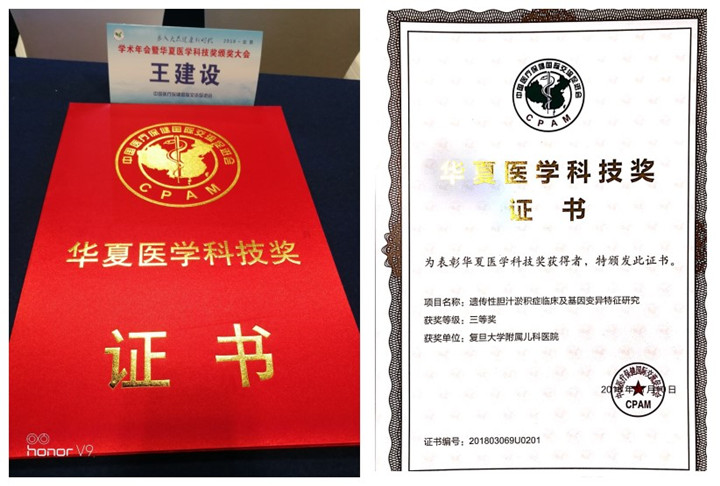 王建设教授及其团队从事儿童肝病诊断、治疗等方面的临床和科研工作30余年。在临床科研方面创造多项国际国内第一。在国际上首先鉴定MYO5B基因变异导致的胆汁淤积症,在国际上首次报道多种遗传性胆汁淤积症新的临床表型特征,包括在国际上首先报道ATP8B1基因缺陷可引起甲状腺功能低下,提示进行性家族性肝内胆汁淤积症(PFIC)I型需监测甲状腺功能,必要时补充甲状腺激素;在国际上首次描述ARC综合征患儿血清GGT水平可明显升高,新生儿胆汁淤积症中GGT水平升高时也不能排除ARC综合征;在国际上首先发现大月龄婴儿Citrin缺陷病可以急性肝功能衰竭为首发起病方式,并在国内率先报道Citrin缺陷病是婴儿伴有各种氨基酸谱异常的肝内胆汁淤积症的最主要原因;在国内率先诊断并报道一系列遗传性胆汁淤积症,包括Alagille综合症,FPIC I型,FPIC II型,FPIC III型,胆汁酸合成障碍I型,胆汁酸合成障碍II型和ARC综合症等;在临床指标方面在国际上首次提供了PFIC I型、II型血清GGT水平的具体参考范围为2-6月龄GGT峰值均<70U/L,7-12月龄GGT峰值<60U/L,1岁之后GGT峰值低于<50U/L。曾获上海市科技进步奖三等奖,本次华夏医学科技奖三等奖是对该团队工作的又一次肯定和鼓励。