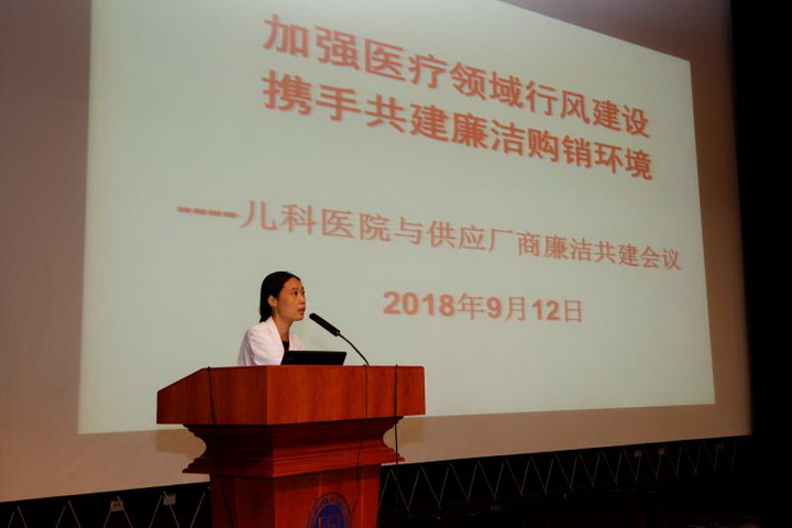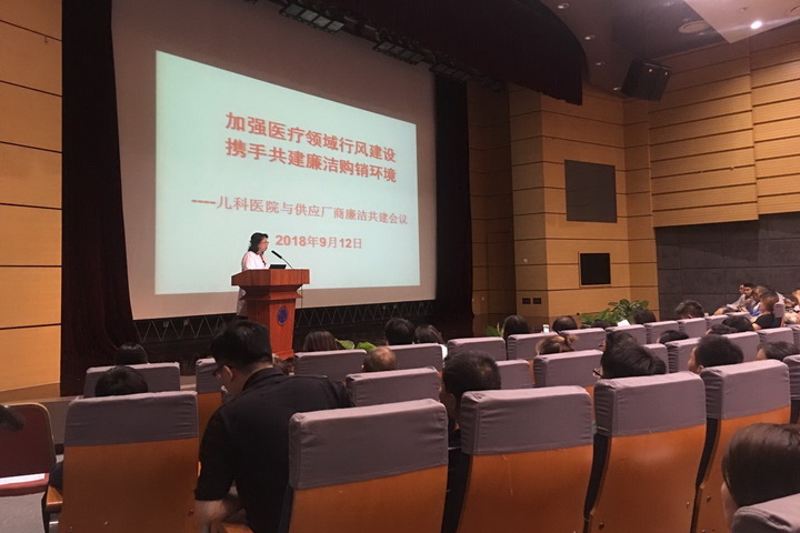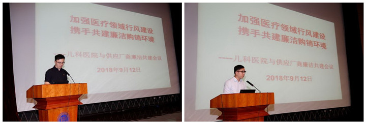 翟晓文副院长在讲话中首先肯定了各供应厂商为儿科医院在推进党风廉政建设、健全廉政风险防控机制过程中给予的支持,感谢各供应厂商为儿科医院的医疗服务事业所做的努力与贡献。同时翟院长以“秉承依法依规办事原则,维护阳光购销环境”为目标,对供应厂商提出三点规范和要求:严格遵守国家、医院规定,公平竞争,合法经营,保持底线意识;保障产品质量及供应链畅通,确保病人安全;倡导采购过程公开透明,沟通渠道合法合规,不得以“红包”、“让利”等贿赂形式破坏医疗行风,尤其强调供应商共同遵守执行“三定一有”接待制度。院企双方共同维持风清气正的医疗环境,为健康中国作出贡献。