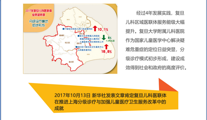 经过4年发展实践,复旦儿科医联体已覆盖复旦大学10家附属医院儿科及闵行、徐汇、松江、金山、青浦五个区,区域儿科服务能级得到大幅提升。