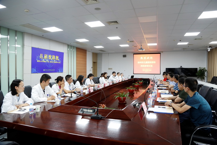 2018年7月3日下午,由徐州市儿童医院曹军华院长带队一行11人来院参观交流。我院黄国英院长、翟晓文副院长、郑珊主任等科室主任接待。双方就医院管理、学科建设、人才培养、科研教学等方面进行深入交流,我院与会临床主任推心置腹,耐心解答徐州儿童医院各科室面临的困境,并提供可参考的建议。黄院长总结,作为国家儿童医学中心,发挥好作为“国家队”的“火车头”作用,有责任带动和引领区域性儿童医学中心的发展,更好服务全国患儿,共同为我国儿童卫生健康事业添砖加瓦!经双方友好交流后,医院层面达成合作意向,择期将签订框架合作协议,有效地推动各科室合作全面开展。