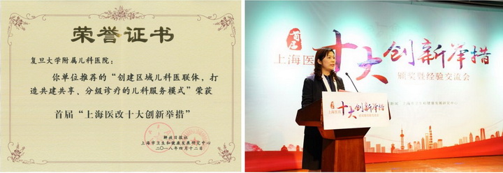 复旦儿科医联体由复旦大学附属儿科医院牵头成立。作为上海市区域儿科医联体的建设模板,率先探索并构建多层级的区域儿科医联体,联合10家复旦大学附属医院组成的横向儿科医联体以及与闵行、徐汇、松江、金山、青浦五个区组成的纵向儿科医联体,切实将优质儿科资源覆盖至整个上海市南片区。儿童专科医院、综合医院、社区卫生服务中心协同发展,为全国提供儿科服务能力建设的参照经验和模板,为国家探索有效的儿科分级诊疗方案提供有益尝试,为提升儿童健康服务水平和群众获得感提供“复旦儿科”方案。复旦儿科医联体2017年还获得“中国医院协会医院科技创新奖”及“上海市医疗服务品牌”。