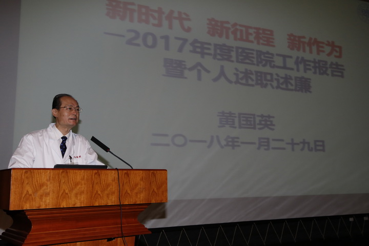 黄国英院长全面总结了2017年全院的工作成绩。他在报告中提到:2017年对儿科医院而言是收获满满的一年。年初,获批成为国家儿童医学中心;5月,举办庆祝建院65周年主题活动并启动院庆年系列学术活动;11月,荣膺全国文明单位称号;12月,以高分通过JCI国际认证复评审,在中国医院最佳专科声誉排行榜中综合排名继续列居全国儿童专科医院榜首。这一年,全体员工团结一心、锐意进取,全面完成了年初制定的各项工作目标。黄国英院长还在报告中对今后几年的工作方向和目标进行了分析和展望,督促继续加强民主政治文明建设,加强民主管理和民主监督工作,激励广大职工共同面对儿科医院目前面临的诸多挑战和机遇。