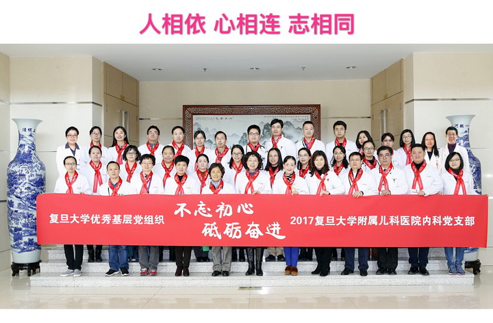 按照医院党委部署,内科党支部2018年起将分为内科一支部及内科二支部各自开展支部工作。为致敬温馨的内科大家庭,12月18日医院党委书记徐虹教授、内科支部书记黄瑛教授携内科支部全体成员相聚合影,翟晓文副院长、张晓波副院长及陆忠院长助理作为支部成员也拨冗参加,为内科支部留下珍贵的“全家福”。虽然今后大内科支部将分开,但是大家“一切为了孩子”的初衷从未改变,一起为儿童健康奋斗的梦想从未改变。加油儿科医生!让我们“人相依、心相连,志相同,齐向前”,共同携手为儿童健康撑起一片蓝天!