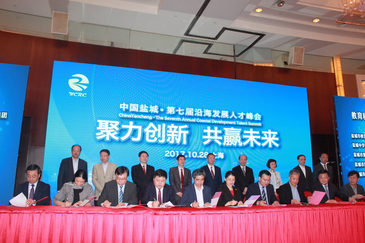 10月28日上午,“中国盐城•第七届沿海发展人才峰会”在复旦大学国际学术交流中心举行,会议期间同时举行了复旦大学附属儿科医院与盐城市妇幼保健院签约仪式,张瑾副书记代表我院进行签约。