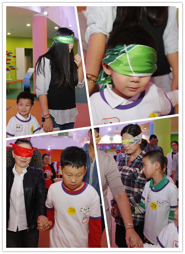 亲子互动环节,在“金牌司仪”灵慧姐姐的带领下,大家玩起了“大手牵小手,我为你导航”的游戏,父母的双眼被蒙住,由孩子们牵着父母的手,作为父母的“眼睛”,孩子们细致而勇敢,都成功带领着父母突破“重围”,回到了“安全地”。让父母惊叹,幼年的“我”其实已经长大,“我们”也可以呵护自己的父母了!不仅让孩子们学会感恩父母,也让父母们欣慰的看到,孩子们真得长大了。