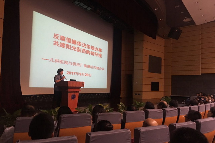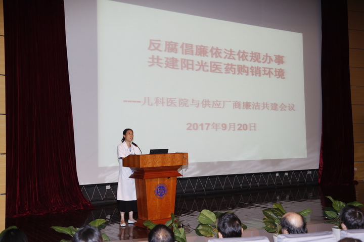 会议伊始,翟晓文副院长在讲话中肯定了长期以来各家供应厂商与儿科医院良好的合作,感谢各供应厂商为儿科医院医教研事业发展的支持,为“一切为了孩子”的共同目标做出的努力和贡献。同时翟院长也就购销工作对供应厂商提出规范和要求:杜绝一切违法违规的商业行为,规范执行销售、采购制度;坚持依法依规的工作沟通,不得以“红包”、回扣等形式贿赂医务人员,破坏医疗行风;共同维护清廉规范的医疗环境,遵纪守法,共同营造反腐倡廉的阳光采购秩序。