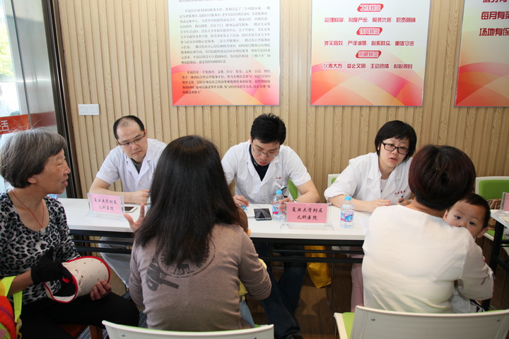 “健康零距离”是由闵行区卫计委牵头开展的区域化党建重点项目,各健康专委会成员单位为邻里中心卫生单元提供技术支撑,为居民提供常见病、慢性病的转诊服务、签约居民预约服务、康复治疗指导等,为我们的社区居民送上个性化健康服务的医疗健康专题活动。我院作为成员单位首次参加义诊,之后我们会通过这个平台,将先进的医疗资源推进社区,通过宣传将疾病预防的概念深入人心,为社区儿童的健康尽献我们力量和职责。