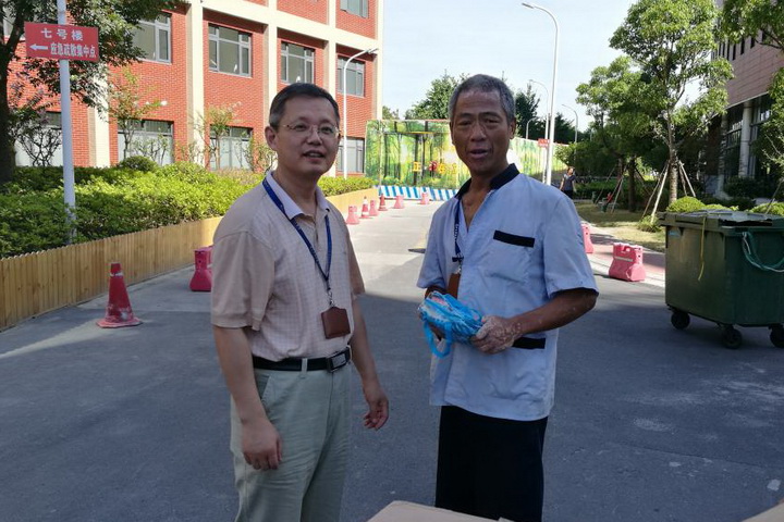 盛锋副院长一席人走访了医院外围勤卫工作区域、室外停车场等,为一线工作人员送去了毛巾、矿泉水、清凉油等防暑降温用品和贴心关怀。每到一处,盛锋副院长都会与一线工作人员亲切交谈,了解他们的生活工作情况,叮嘱大家在做好本职工作的同时一定要注意休息、劳逸结合、注意防暑降温和劳动保护工作,避免发生高温中暑意外;同时也对他们不畏酷暑、坚持奋战在工作一线的敬业精神表示敬意,感谢他们为了创建整洁、安全、和谐的医疗环境所付出的辛劳和汗水。
