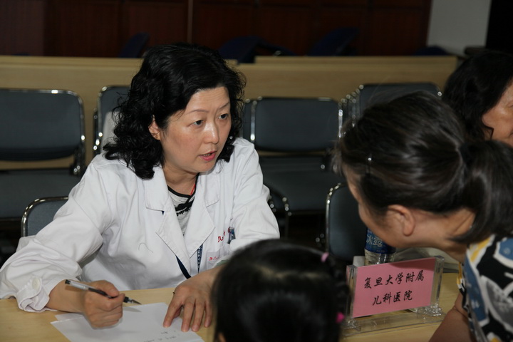 义诊现场,王榴慧主任的咨询台前排满了等候咨询的家长,家长们迫切的想咨询孩子的健康问题,想听听儿科专家的建议。王医生耐心解答家长提出的问题,并为家长做问题分析,分析后给家长做了明确的健康指导,还给需要医治的儿童现场开了药。