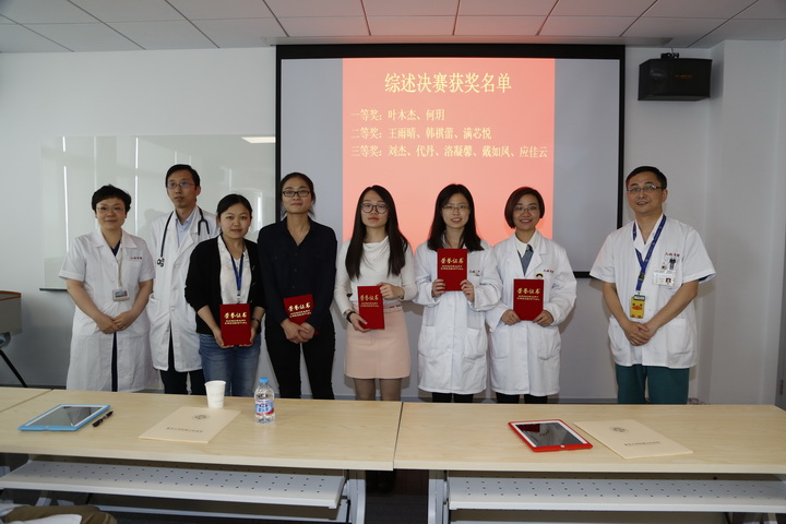 90位来自医院各专业的内外科医生、医技人员报名参加了比赛,分为研究生组、内科加医技组、内科二组、外科组,在4月初分4组进行了综述比赛初赛,比赛严格按每组评分高低结合综述评分,择优选拔了10位选手入选决赛。