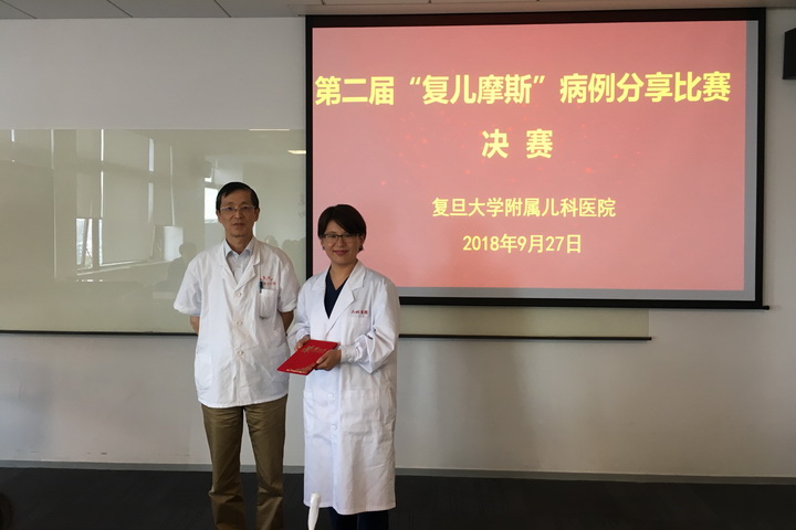 比赛分专家评分和住院医师评分两个环节,通过对病例内容、背景知识、语言表达、PPT制作及现场气氛五个方面进行打分。本次病例分享会延续上一届“复儿摩斯”病例分享的举办风格,从《发热之谜》、《解读1例匪夷所思的发热待查》、《 惊!不到周岁就糖尿病加重度贫血,原因竟然是这个?》 、《肢体扭动寻因之路》、《 尿路感染+肾积水怎么查?》等一个个夺人眼球的题目开始,一步步引人入胜。病例分享者通过对看似平常的发热、腹痛、呕吐等症状,进行抽丝剥茧,侦破疑难病例。经过激烈比拼,新生儿科徐保干斩获一等奖,外科孙瑜博、神经科杜晓楠、风湿科王春燕获得二等奖,消化科王胜楠、免疫科孙碧君、感染传染科方微园、内分泌科孙成君获得三等奖。
