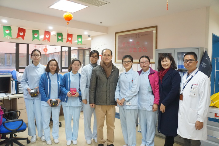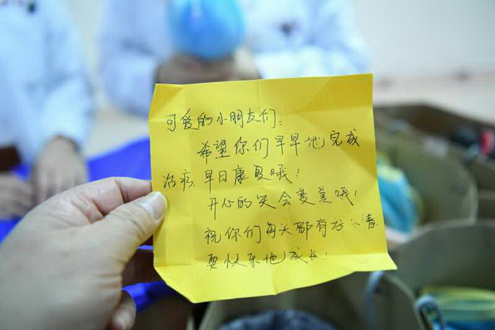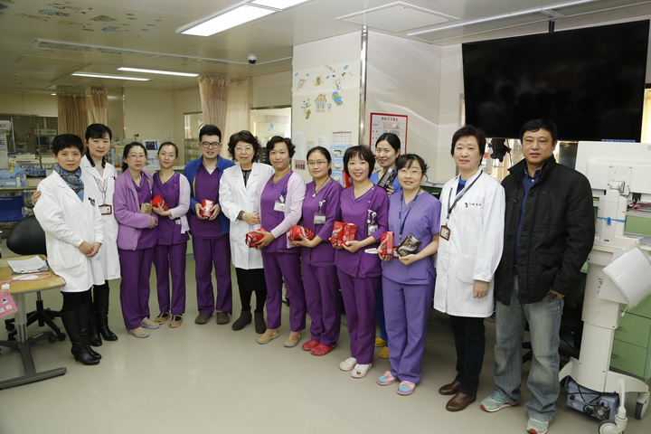 年初一早上,党员志愿者们将装着毛毯、保温杯、爱心卡的爱心大礼包送到了每一位重症患儿家长的手中。