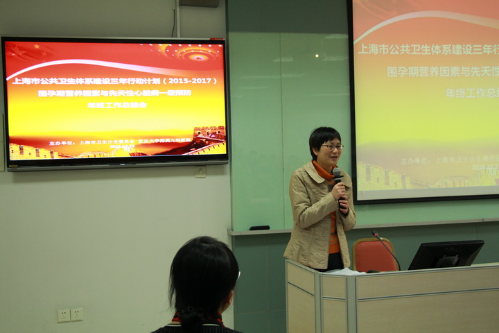 2016年12月23日下午,上海市公共卫生第四轮公共卫生体系建设三年行动计划(2015-2017)“围孕期关键营养因素与先心病预防GWIV-24”项目的中期总结会议在复旦大学附属儿科医院5号楼第一教室召开。上海市卫生计生委妇幼处吴向泳处长,项目负责人复旦大学附属儿科医院黄国英院长及项目组成员、参与项目的10个区县卫计委、妇幼保健所各相关科室负责人以及项目合作医疗机构的负责人和工作组出席会议。