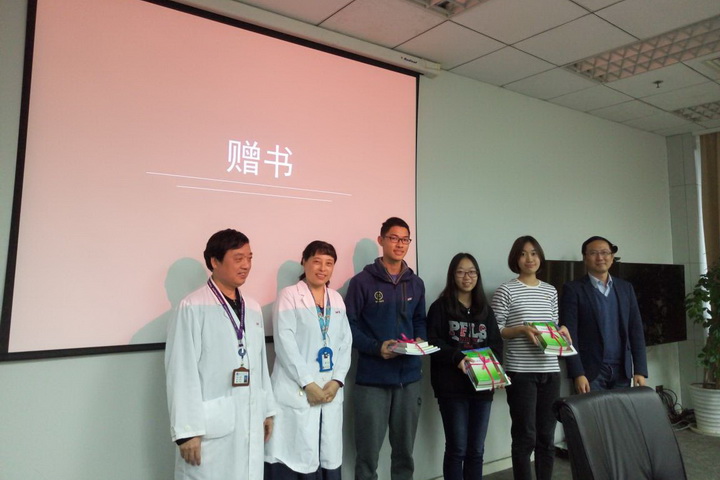 为鼓励学生对儿科的了解和学习,郑院长、陈主任和高主任将《儿科实习手册》(我院黄国英教授主编)、《儿科医院2015年年报》、《医学人文沟通》(我院周文浩教授主编)、《一个小儿外科医生的独白》(我院沈帧医生翻译,郑珊教授审校)四本书赠送给学生,书中自有黄金屋,书中自有颜如玉,书中也有儿科的天地,等待学生去挖掘。