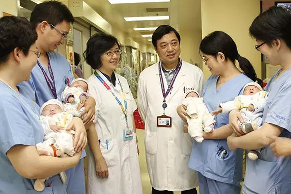 新生儿科主任陈超教授介绍,儿科医院在2004年、2009年分别救治过四胞胎,这是第三次,三次救治均成功存活。这次救治的四胞胎体重最小,幸运的是她们没有发生早产儿容易发生的其他并发症,如容易致盲的早产儿视网膜病,需要手术治疗的早产儿坏死性小肠结肠炎,需要家庭氧疗的慢性肺病等。其中,家属积极配合的全母乳喂养功不可没,因为母乳中的有效成分对很多严重并发症都有预防作用。陈超教授表示,这次四胞胎的成功救治,我们的院前转运、院内精细化救治、出院后管理一体化救治模式充分发挥了作用,同时,我们注重人文关怀及慈善救治,使得家属在配合治疗上赢得了更多的空间。
