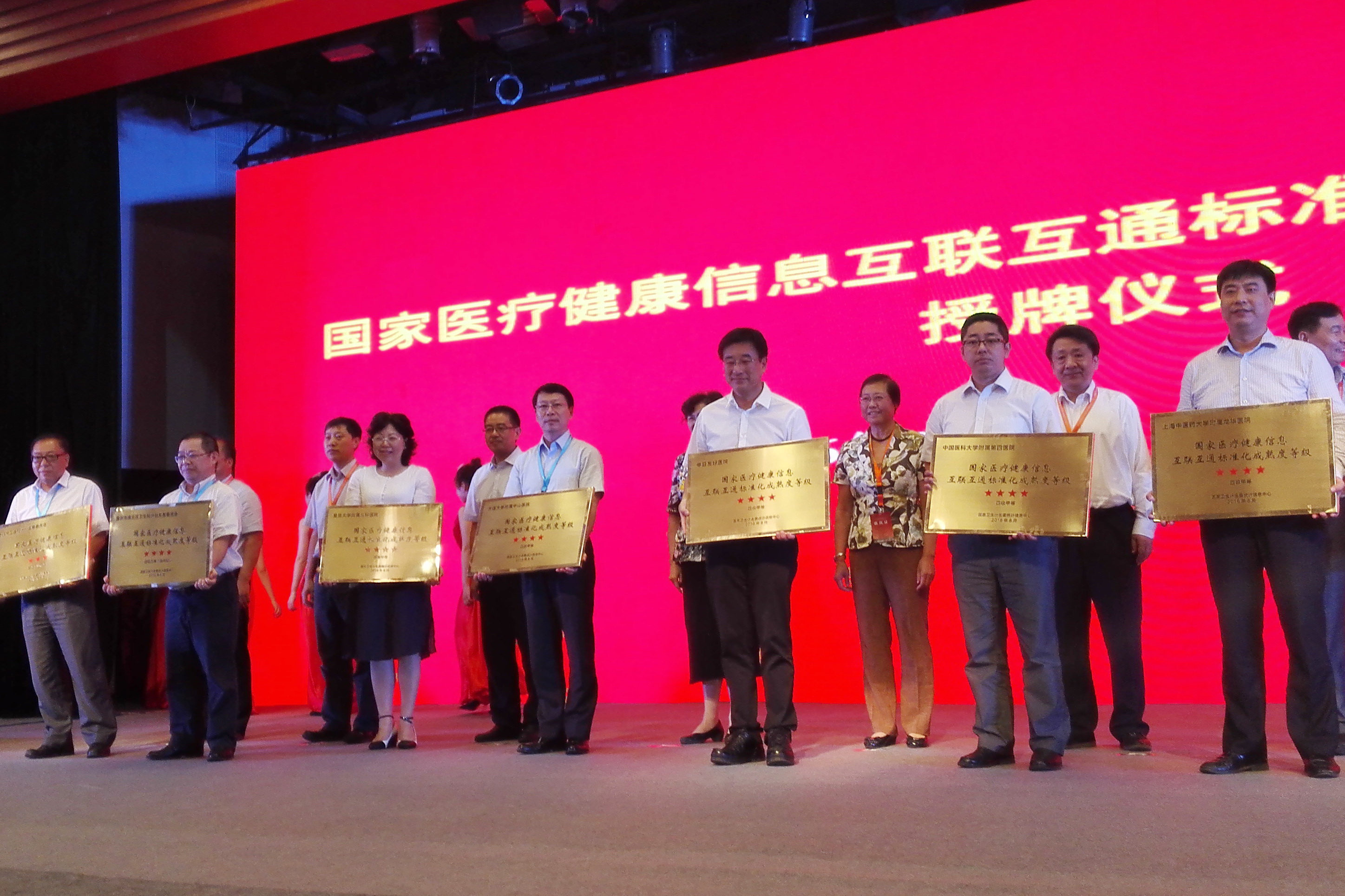 2016年8月29日,2016中国卫生信息技术交流大会暨软件产品与设备展览会在南京国际展览中心隆重开幕,开幕式上我院党委书记徐虹教授应邀出席了此次关于国家医疗健康信息互联互通标准化成熟度等级测评的授牌仪式。