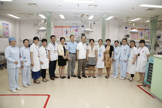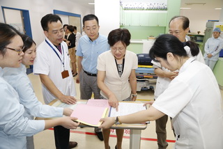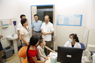 今年上海的夏天连日高温,儿科医院的单日门诊量最高近8000人次。8月9日上午,上海市卫生计生委黄红书记、党办高秋韵主任、医政处吴宏处长、上海市医务工会何园副主席等领导一行来到儿科医院,亲切看望和慰问了工作在“战高温”一线的医务人员,并对他们的辛勤付出表示感谢。黄红书记一行走访了急诊预检、输液中心和急诊抢救室并慰问当班医护人员,同时视察急诊抢救室的硬件设置及工作流程,鼓励大家做好暑期高温期间的接诊工作。